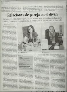Mª Luz Losada Somoza, una de las Terapeutas de 2T Psicología, ha sido entrevistada por una periodista del Faro de Vigo, para hablar de Terapia de Pareja…